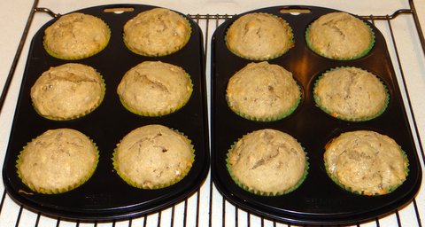 Bake for 20-25 minutes until a toothpick inserted into the center of a muffin comes out clean. Do not bake longer than necessary to avoid dry muffins.