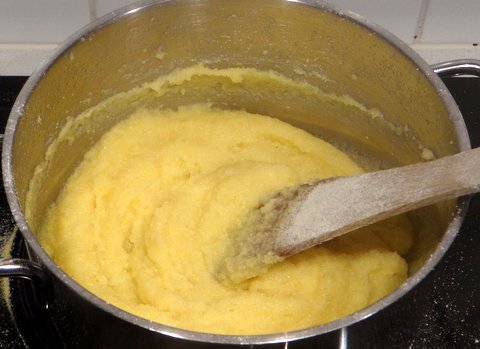 Cook, stirring continually, for 25 minutes until the polenta is done.