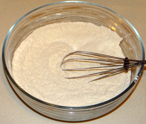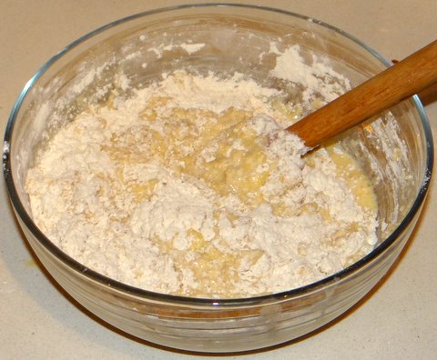 Add wet ingredients to dry ingredients and mix gently until just mixed. Do not overmix.