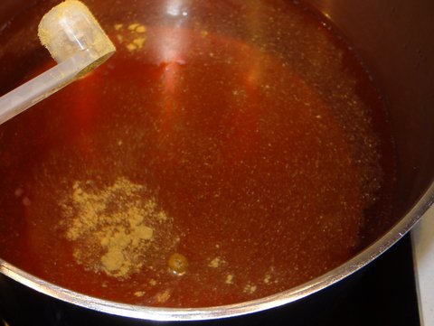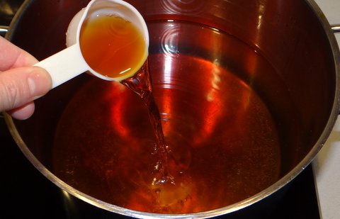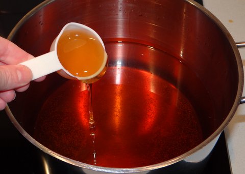 Add 60 ml honey (it helps to submerge the measuring cup in the water that is by now getting warm to get the honey off of the measuring cup).