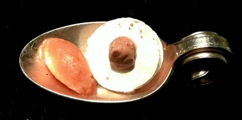 Chicago is a frozen ‘old fashioned’ cocktail with foie gras, served on a spoon. Nice combination of flavors and textures.