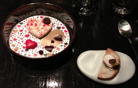 Venice is a calzone stuffed with duck tongue and taleggio cheese and served with mushrooms. It sounds more interesting than it tastes. The ‘heart’ with beetroot, herring caviar and white chocolate was very good.