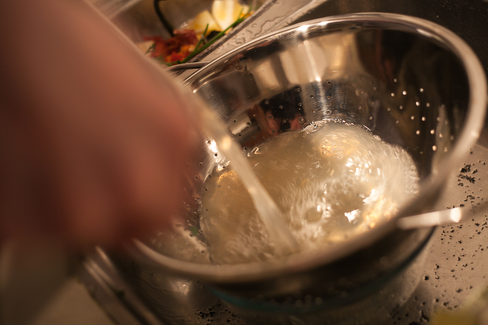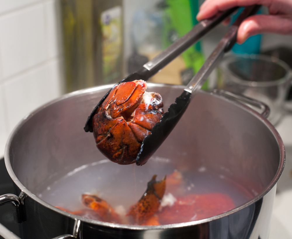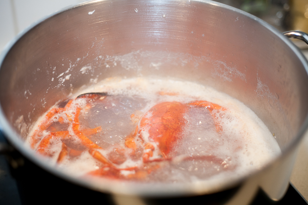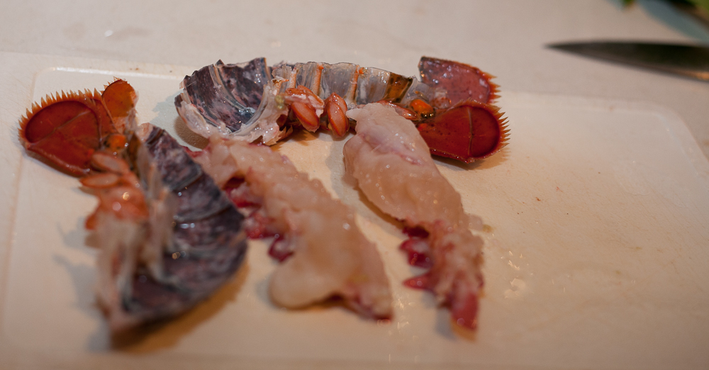 As I had to serve 7 courses at night, I prepared as much as possible in advance. So also the lobster in the afternoon.