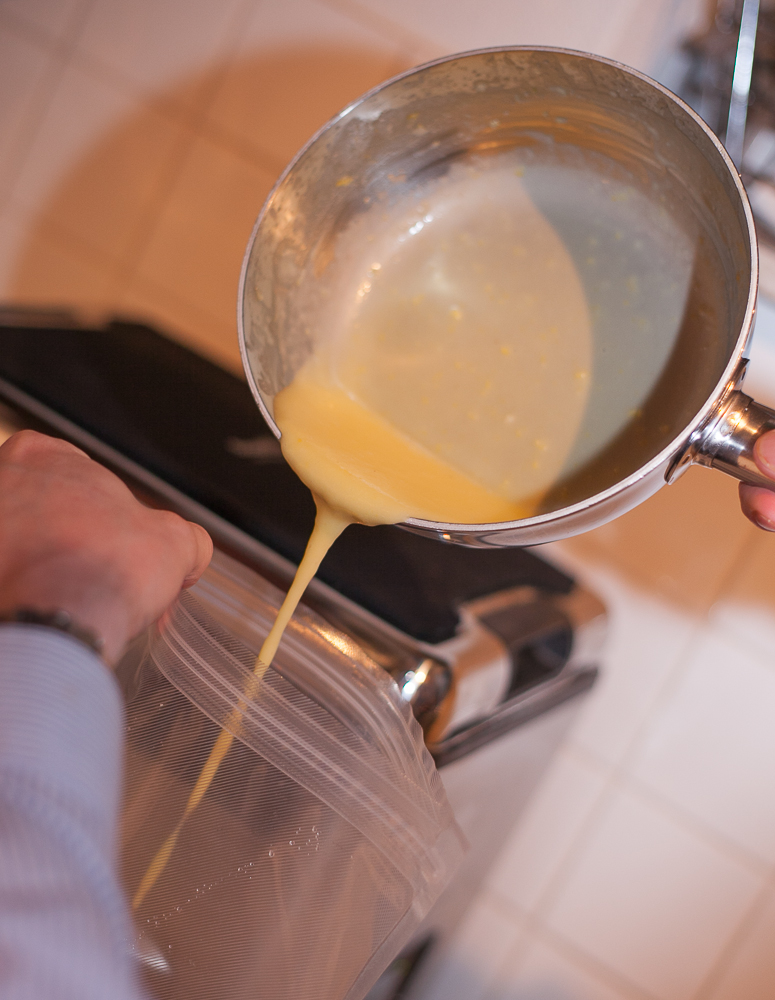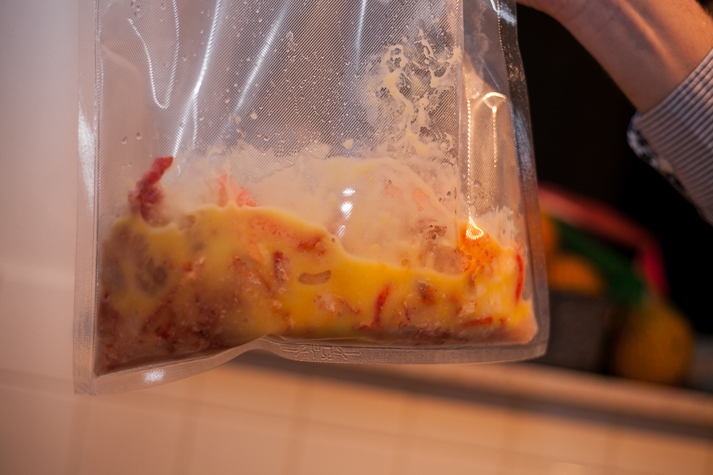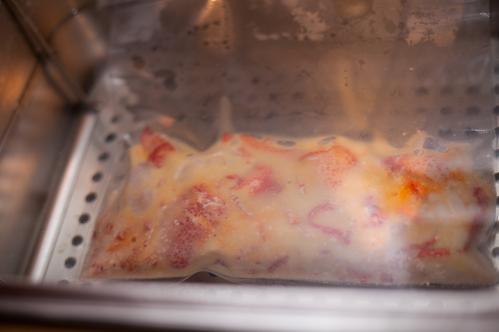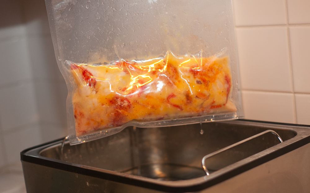 Make sure the beurre monté is distributed evenly around the lobster meat in the bag.