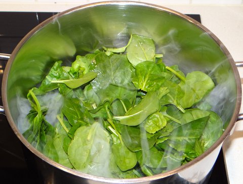 Cook, stirring, over medium heat for about 10 minutes until the spinach is tender. (The spinach will be reduced to almost nothing compared to what you started with.)