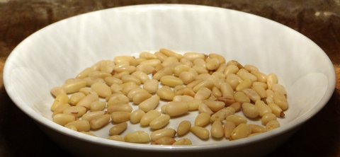 Meanwhile, toast the pine nuts in the oven at 180C/350F for 5-10 minutes.