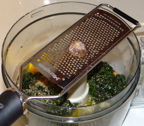 Process until smooth and homogeneous. The pine nuts do not have to be finely ground, but you don’t want whole pine nuts in there either.