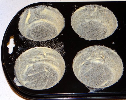 That’s an interesting technique… dusting the inside of the muffin tins with crumbs!