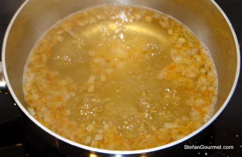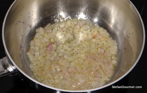 Heat 2 tablespoons clarified butter in a saucepan and add the shallot.