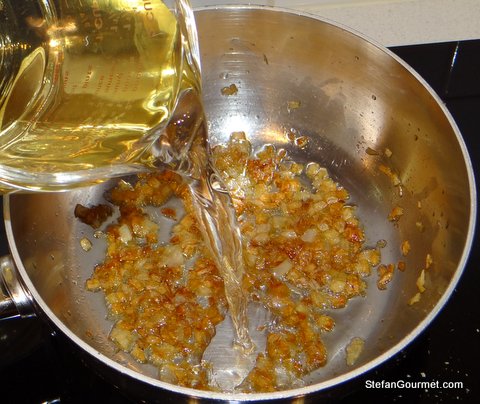 Let this simmer until only half of the wine is left.
