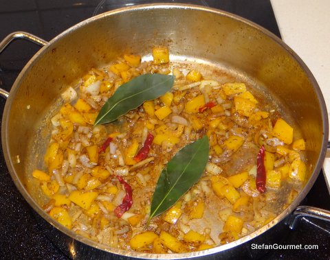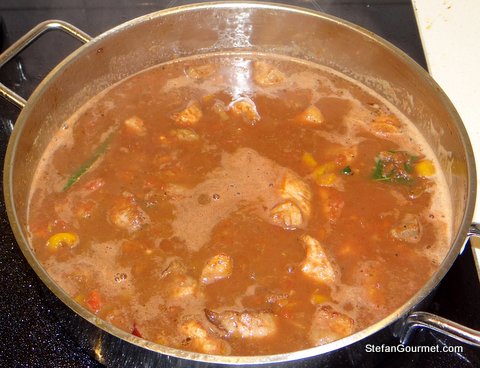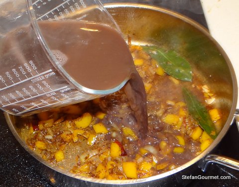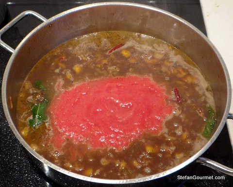 Add the tomatoes, after zapping them in the foodprocessor.