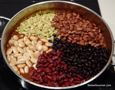 1. I think I got the idea to use five different beans because I saw some 5-bean chili recipes on American sites.
