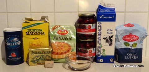 There is a big difference between a ‘real’ freshly baked vlaai from Limburg and the industrially produced ones that are available all over the country. Kersenvlaai (vlaai with cherries) is one of the best known kinds. The pastry of the kersenvlaai I remember from my childhood tasted of cardboard. I can still remember the first time I had real kersenvlaai from Limburg, about 20 years ago. A friend of mine from Limburg was visiting, and since Limburg is so far away (3 hours is considered far in this small country of ours), my friend would be sleeping over. His mother had given him a kersenvlaai, bought from the local bakery in Nuth, as a gift for my family. That kersenvlaai was freshly baked and changed my opinion of vlaai completely. It was delicious! It is this kind of kersenvlaai that I tried to bake, and I think I came pretty close for my first attempt. It is fairly easy to do and very tasty, so I urge you to give this a try. You will be glad you did!