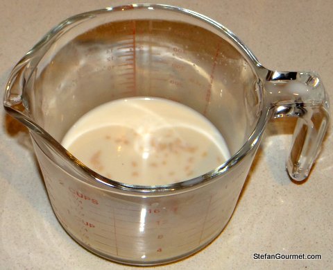 Heat the milk in the microwave oven to lukewarm. Add the yeast and stir.
