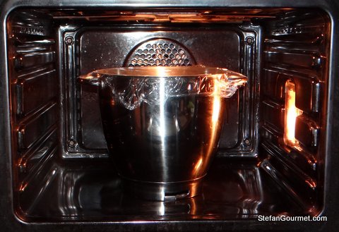 Preheat the oven to 200C/390F (static) or 180C/350F (fan). Put an oven proof dish with about 125 ml (1/2 cup) of water in the oven.
