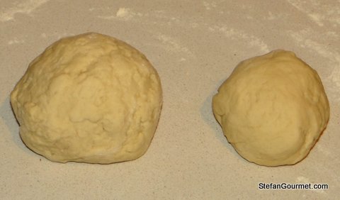 Knead the dough briefly by hand to get rid of any trapped air. Divide into 2/3 for the bottom and 1/3 for the top of the pie.