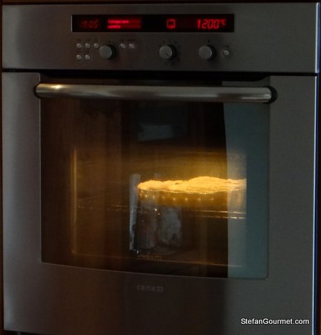 Bake for about 25 minutes at 200C/390F (static oven) or 180C/350F (fan).
