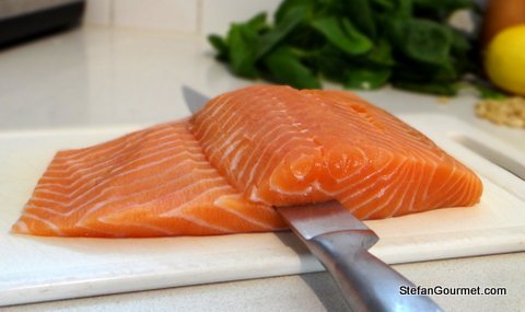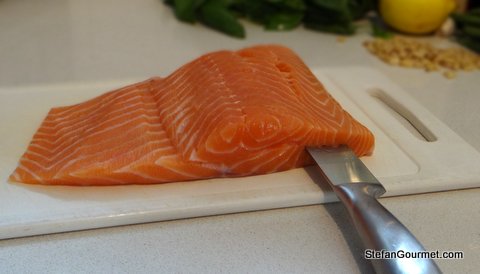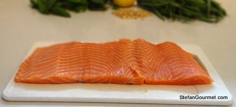 600 grams (1.3 lbs) skinless salmon fillet, a straight piece cut from halfway between the head and the tail