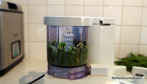 Process on low speed, scraping down the sides as needed. Add just enough olive oil to give it a creamy consistency.