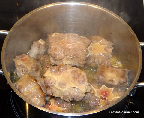 Bring to a boil. Lower the heat to a simmer, cover the casserole, and simmer for about 4 hours or until the oxtail is fall-off-the-bone tender.