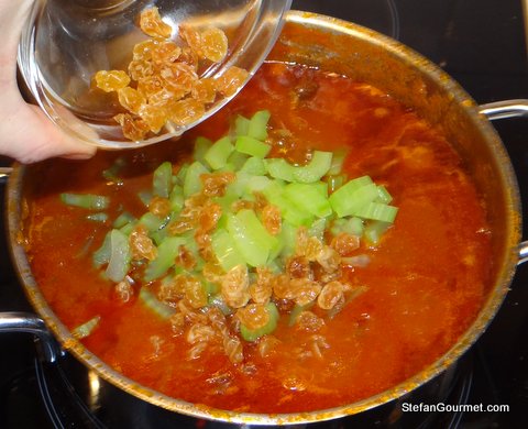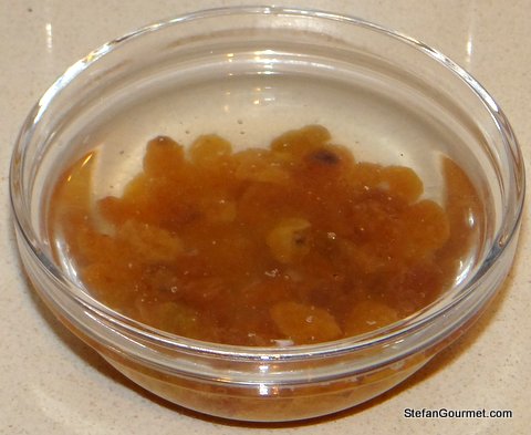 To finish the sauce, soak the raisins in hot water for 10 minutes.