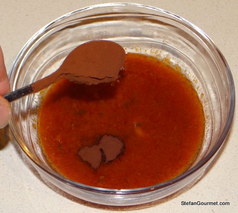 Stir the cocoa powder into the sauce and then add this mixture to the casserole.