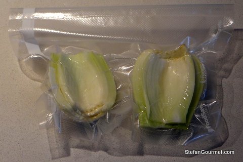 If using sous-vide, vacuum seal the fennel. This is easiest in stacks of about three. Cook sous-vide for 45 minutes at 84C/183F.