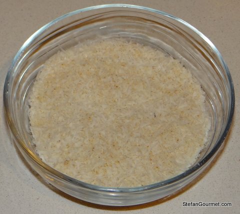 Mix equal amounts by volume of bread crumbs and freshly grated parmigiano reggiano.