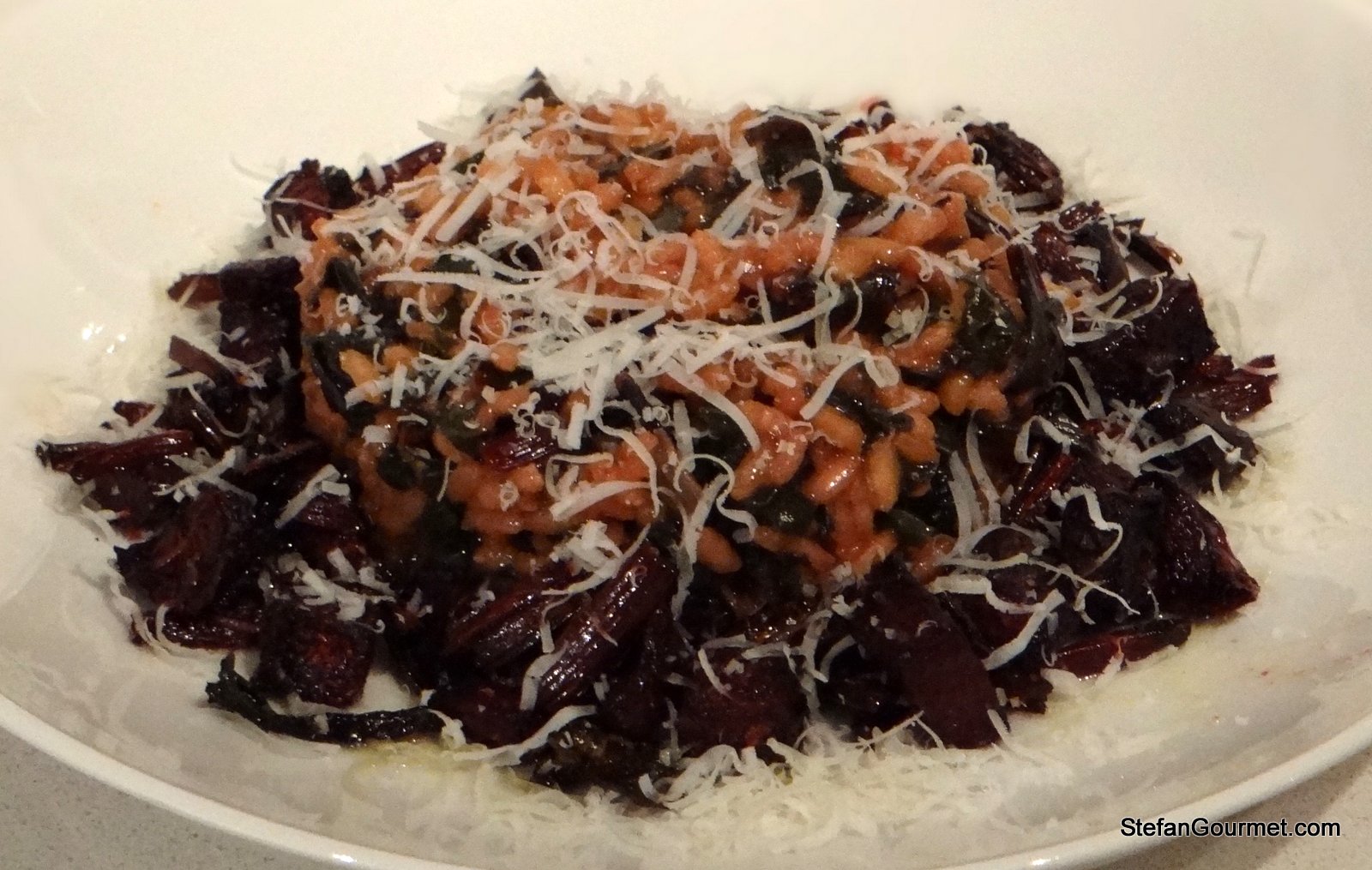 2. I saw the title of this post, Stefan, and thought that you had created a tasty risotto. Seeing it now, I was right. Roasting the beet(root) beforehand and including the greens must have brought some incredible flavors to the dish. Nicely done!