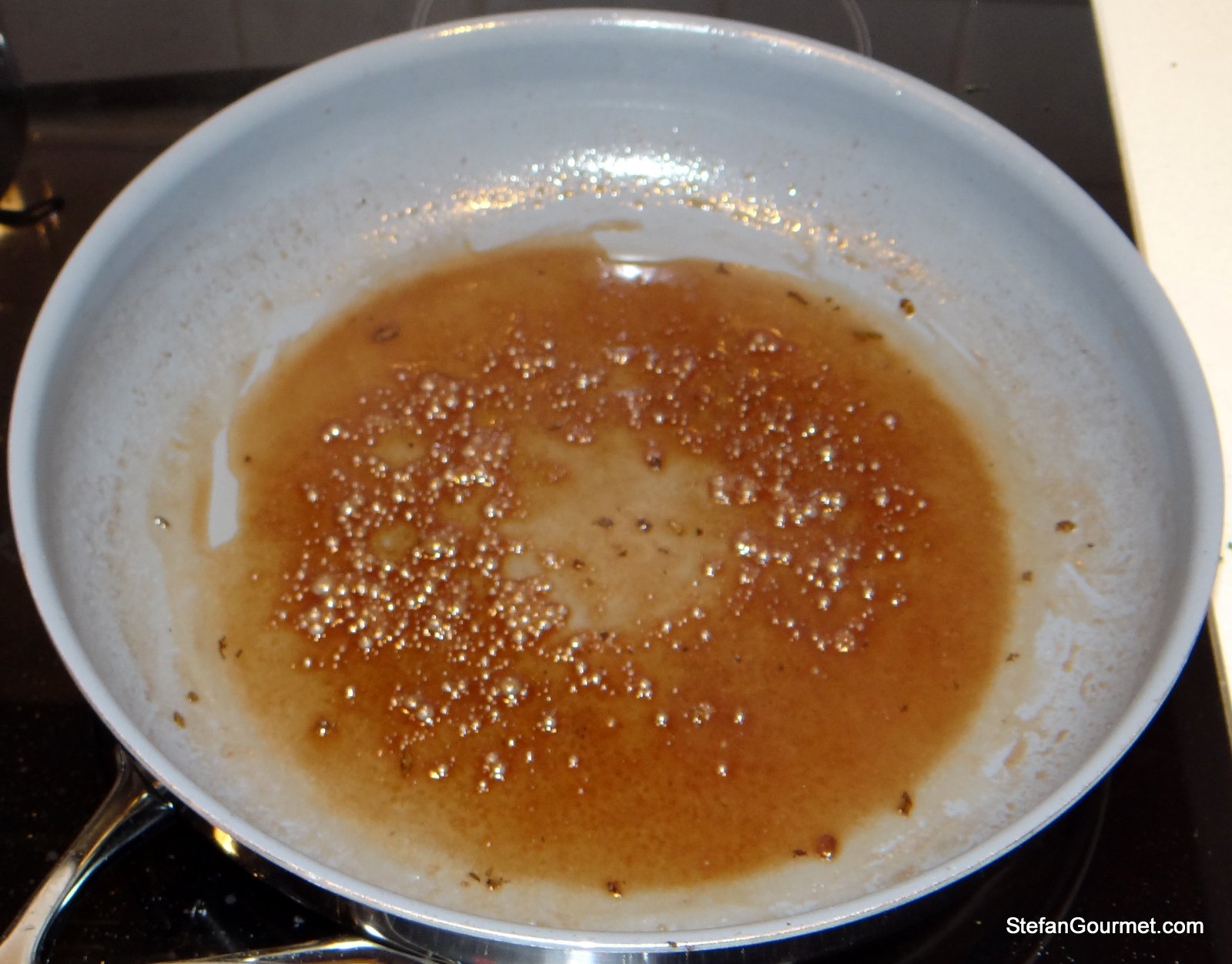 Catch the juices from the bag in a saucepan. Mix a teaspoon of cornstarch with a teaspoon of cold water in a small bowl until smooth, and add this to the juices. Then stir well.