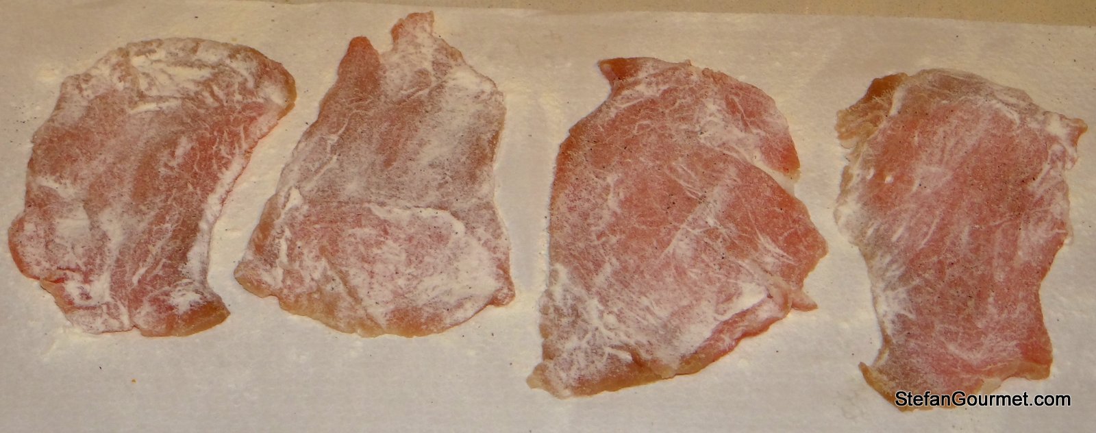 4 thin veal scaloppine, about 250 grams (.6 lbs) total weight