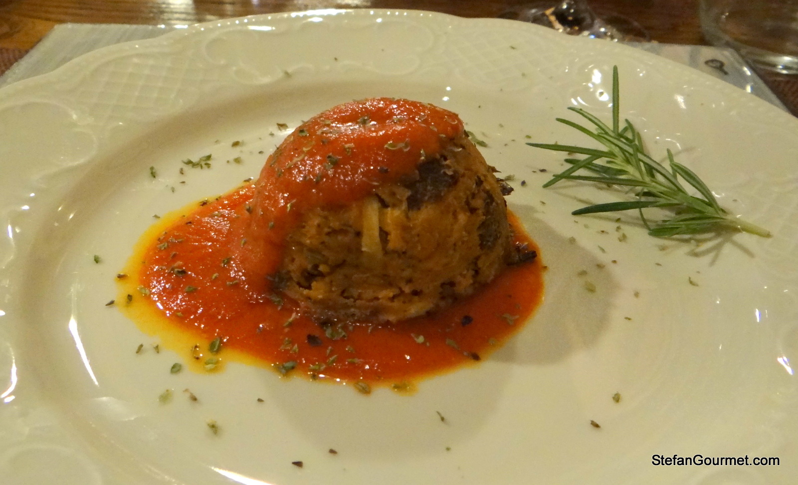 The warm antipasto was a bread pie with ricotta cheese and a tomato veloute, sprinkled with Sicilian oregano (which is very fragrant). The tomato sauce paired very well with the bread pie (sformatino di panecotto sounds much nicer, doesn’t it?) and both were delicious. 9/10