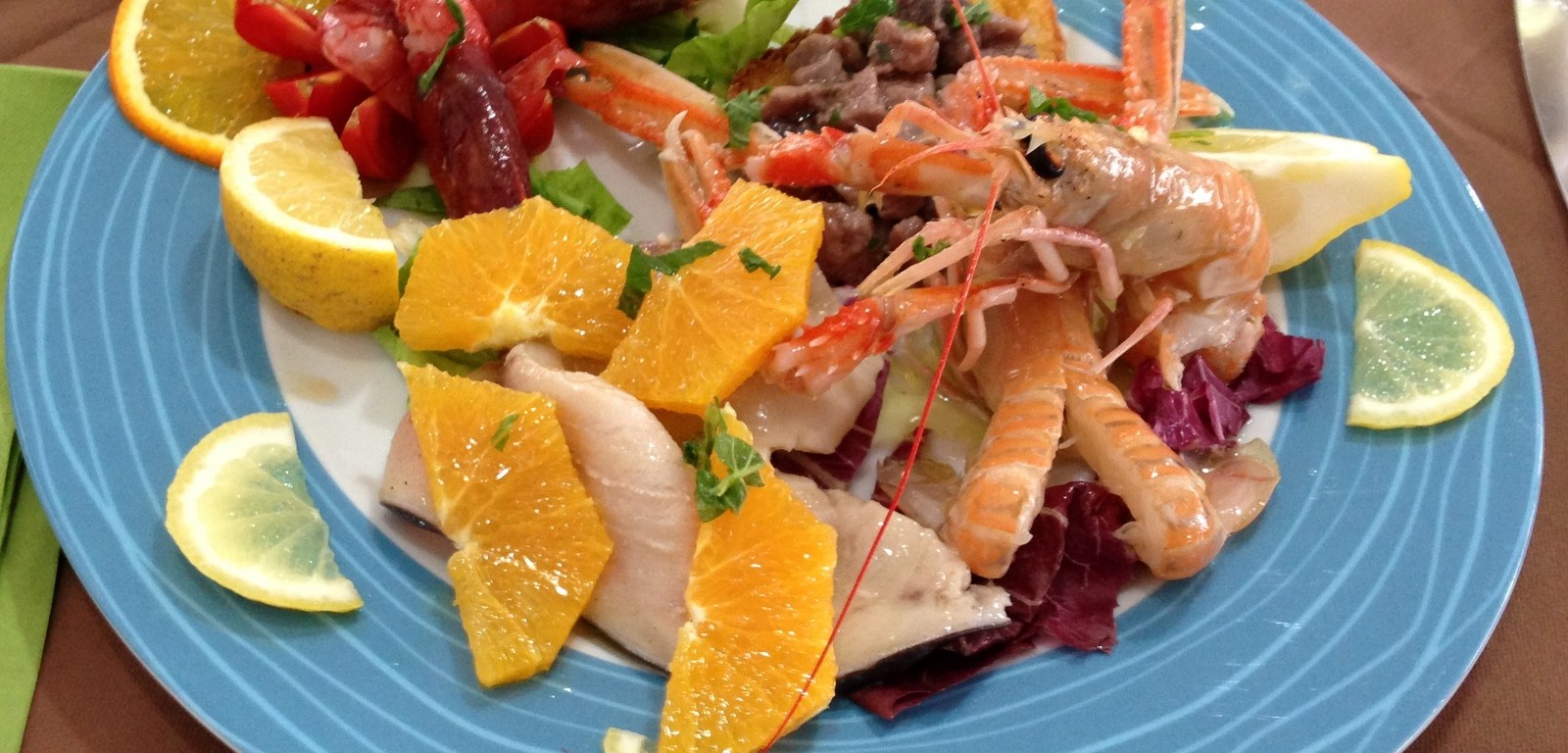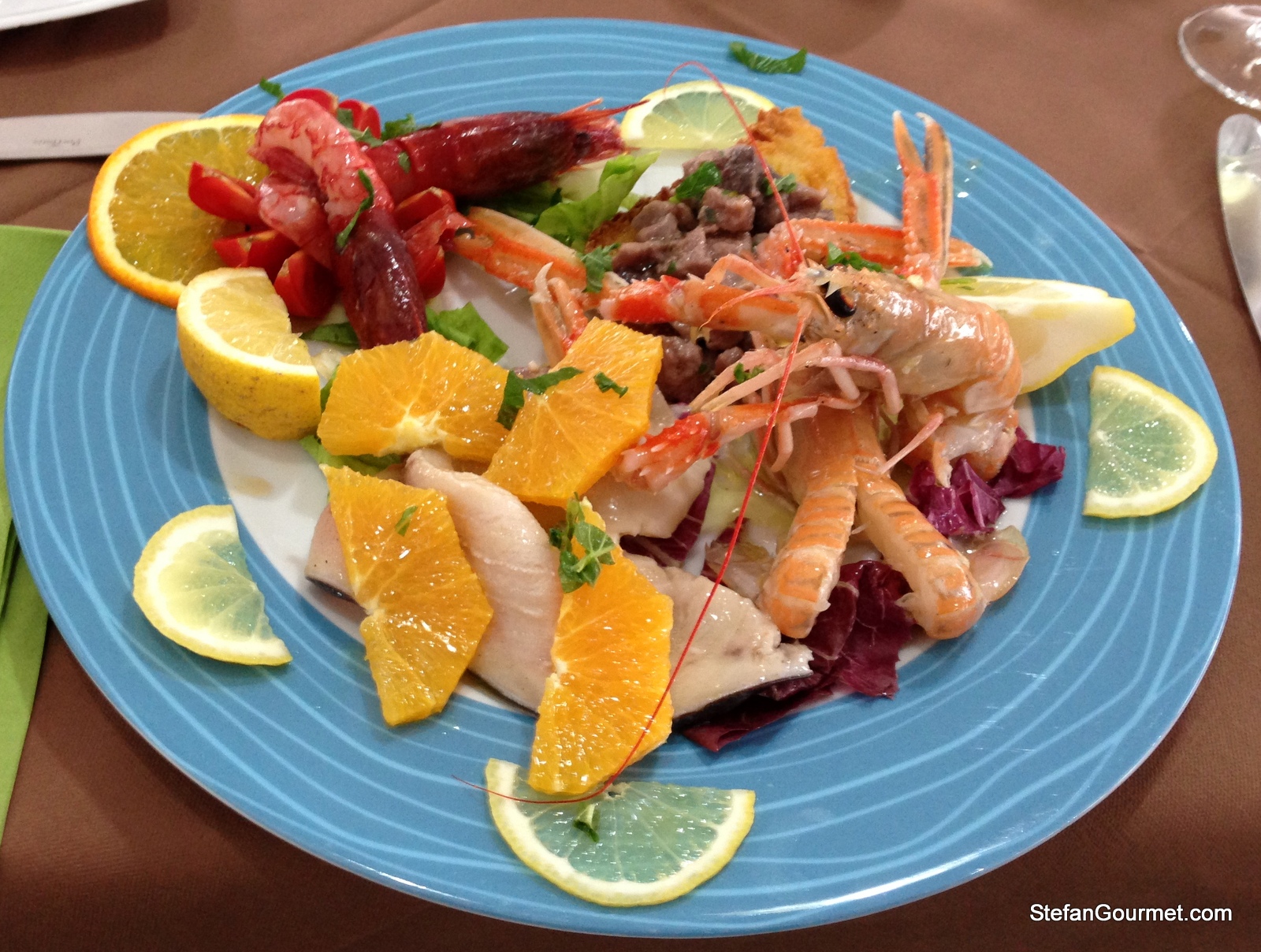 Raw seafood: prawns, scampi, swordfish, and marinated tuna with lots of citrus. Everything was very fresh and especially the prawns and scampi were very tasty.