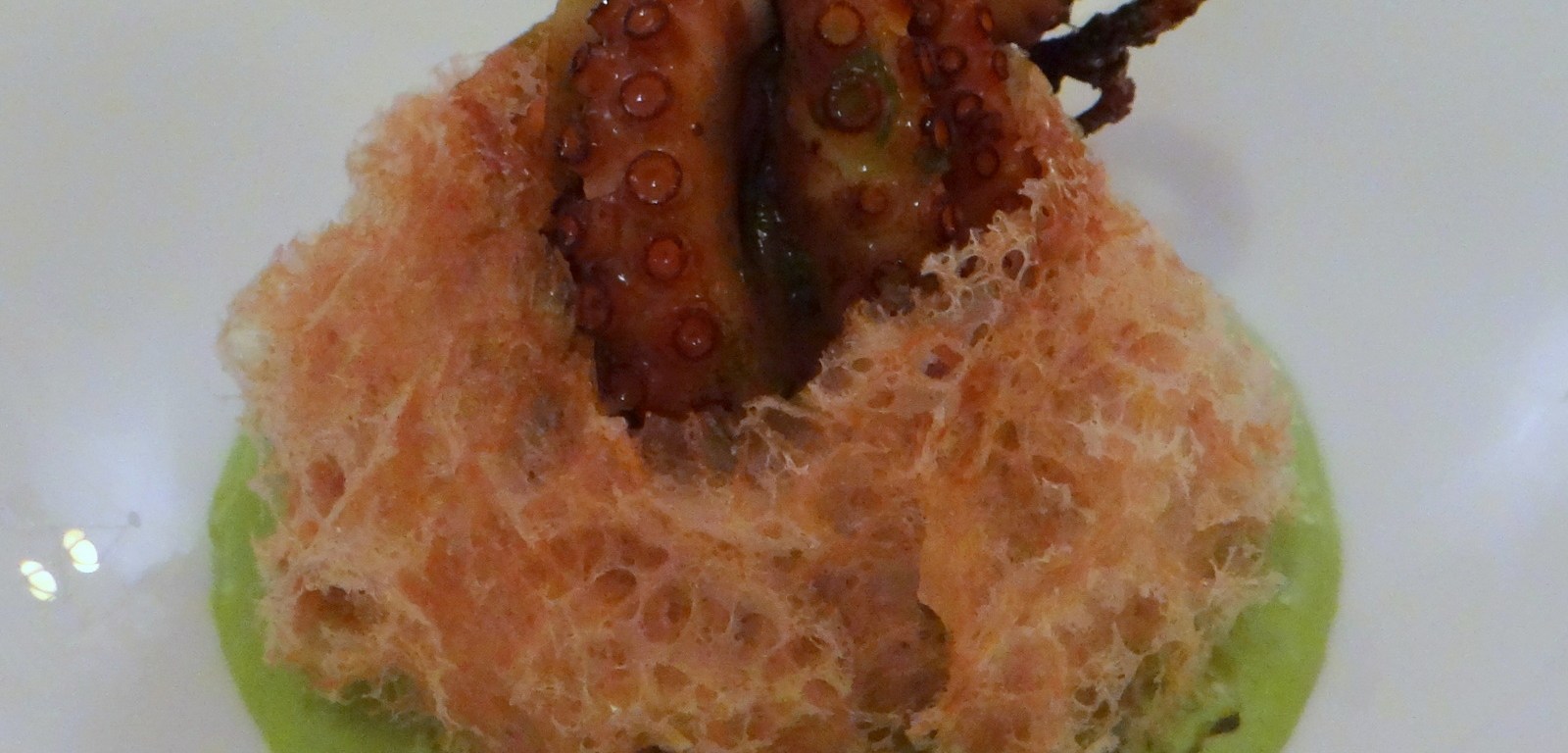 Polpo sulla roccia. Very tender octopus with a nice ‘charcoal grilled’ flavor, on a very crispy ‘rock’ made of octopus (although I don’t have a clue how) and parsley mousse. Very good combination of flavors and textures. The ‘rock’ was unlike anything I’ve ever eaten before. Not onlycrispy, but also quite sturdy and thus really like a rock. 10/10