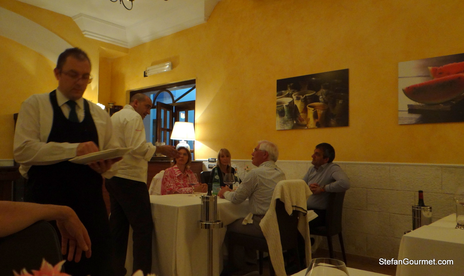 I wrote before about Gambero Rosso and how to rate trattorie with 1, 2 or 3 prawns. Similarly, they rate restaurants with 1, 2 or 3 forks. There is only one restaurant with 3 forks (tre forchette) in Sicily, and this is it. The restaurant also has two Michelin stars. I tend to agree more with Gambero Rosso’s judgements in Italy than I do with Michelin’s, and that holds up in this case as well.