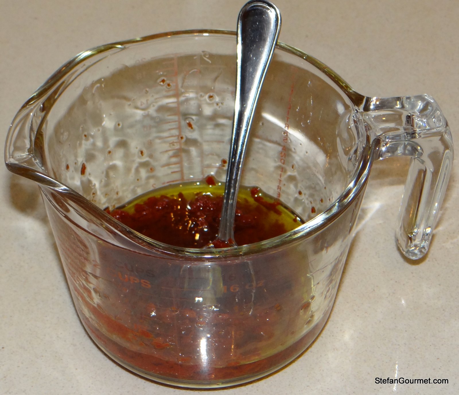 Mix the oil and the tomato puree in a small bowl.