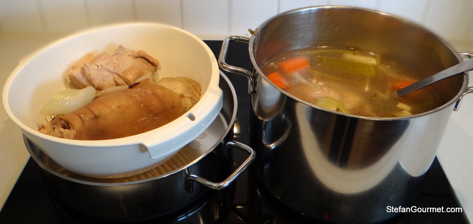 After an hour check whether the stock has set by itself. Since I didn’t use a pork trotter it was not a big surprise that it was only partly set.