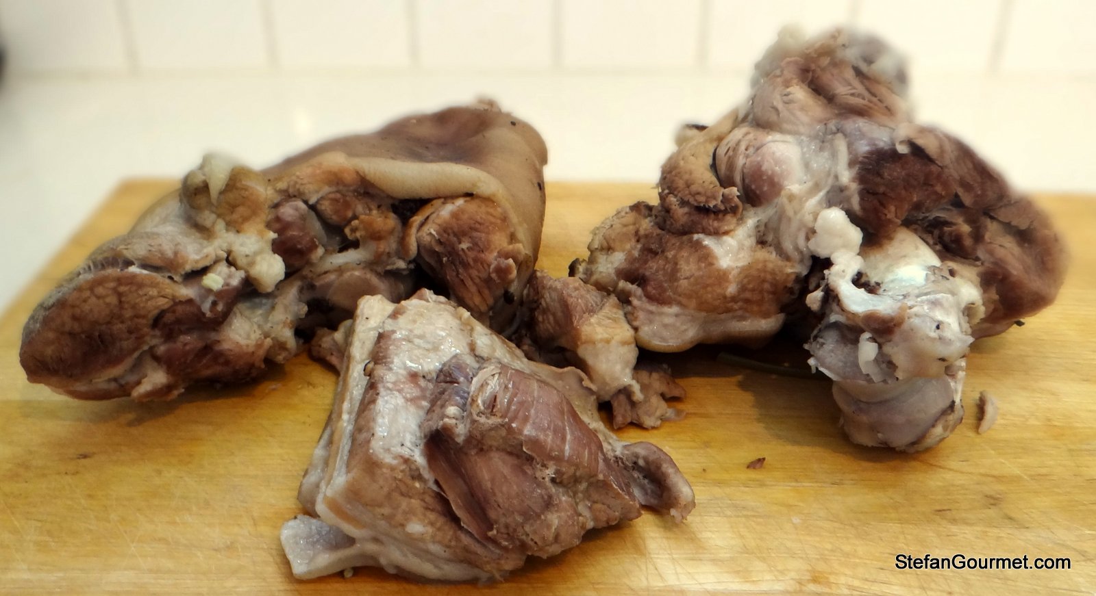 The results look terrific. It’s a shame it didn’t tickle your tastebuds but, to be honest, I can’t get very excited about meat in aspic either. By the way, if you remove the rind and then add it to the stock for the reduction, it should help make it gel quite a bit….
