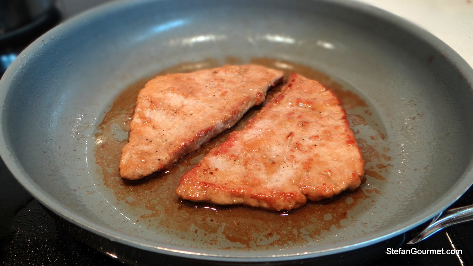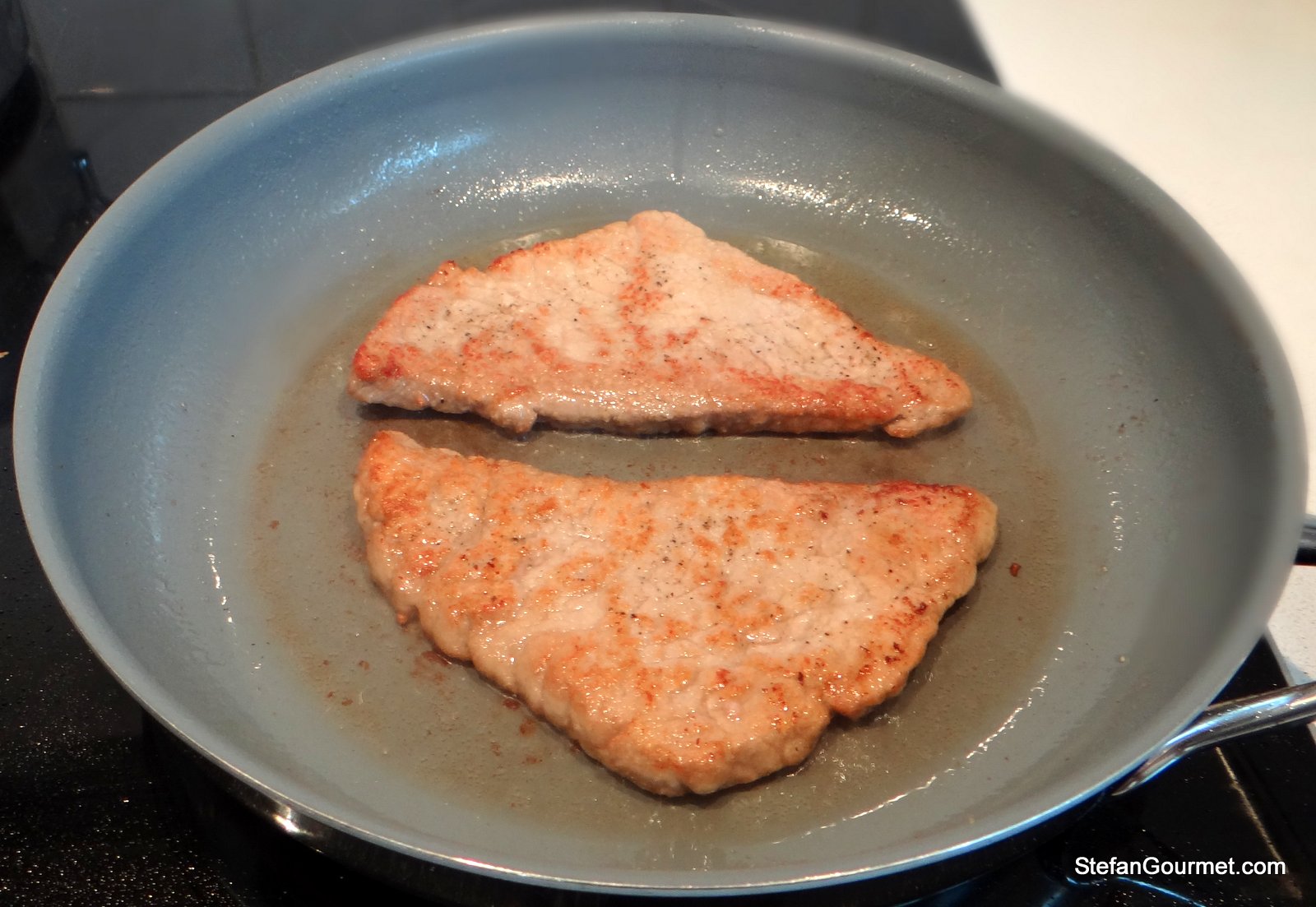 Heat clarified butter or butter and olive oil in a frying pan. Add the veal and brown quickly over high heat on both sides, 45-60 seconds per side.