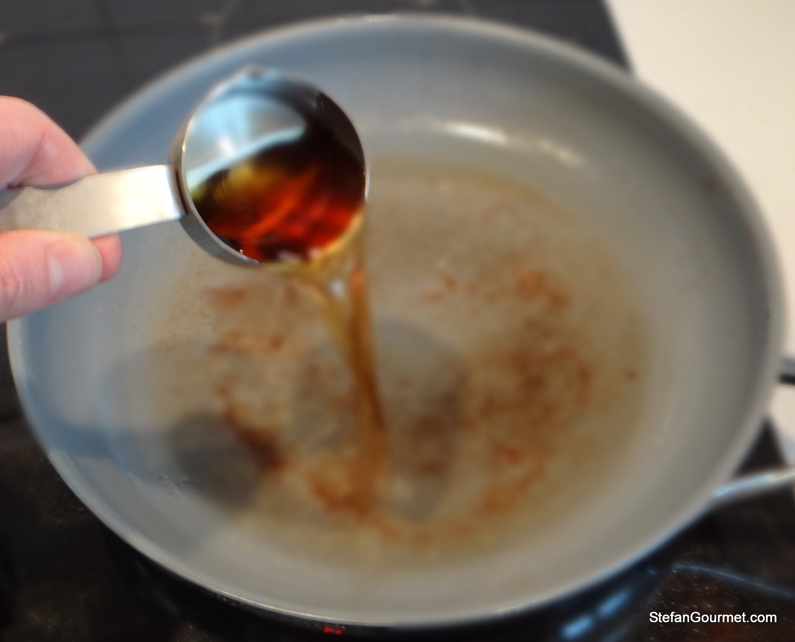 Remove the veal from the pan and deglaze with the marsala. Cook over high heat until reduced by half.