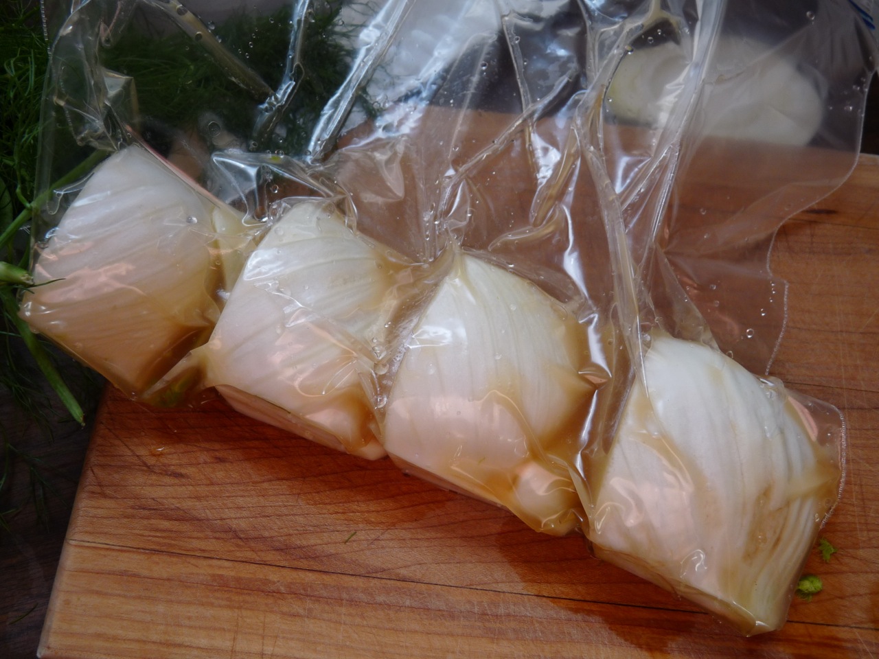 Fennel is a vegetable that I have always enjoyed eating. Its anise or liquorice flavor gives salads a subtle flavor-kick which I like. But I have never cooked with it. I don’t own an electric sous-vide water bath but I do own a large stock pot and Ziploc bags. So all that’s left to make this recipe are the ingredients.