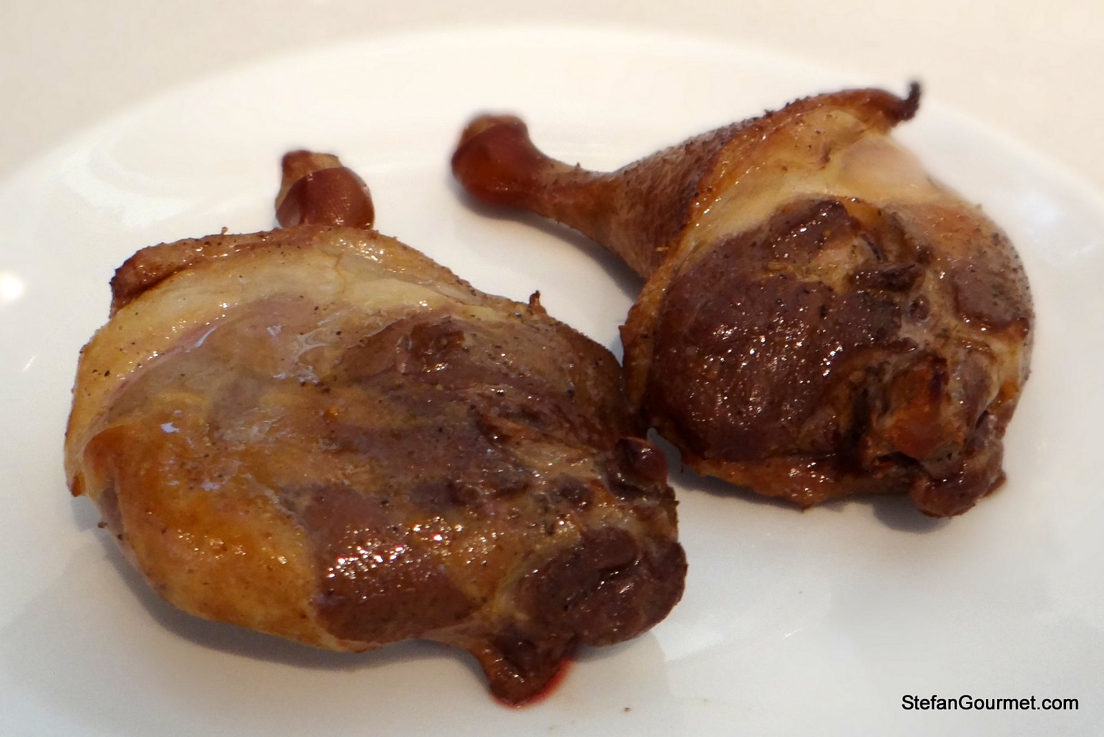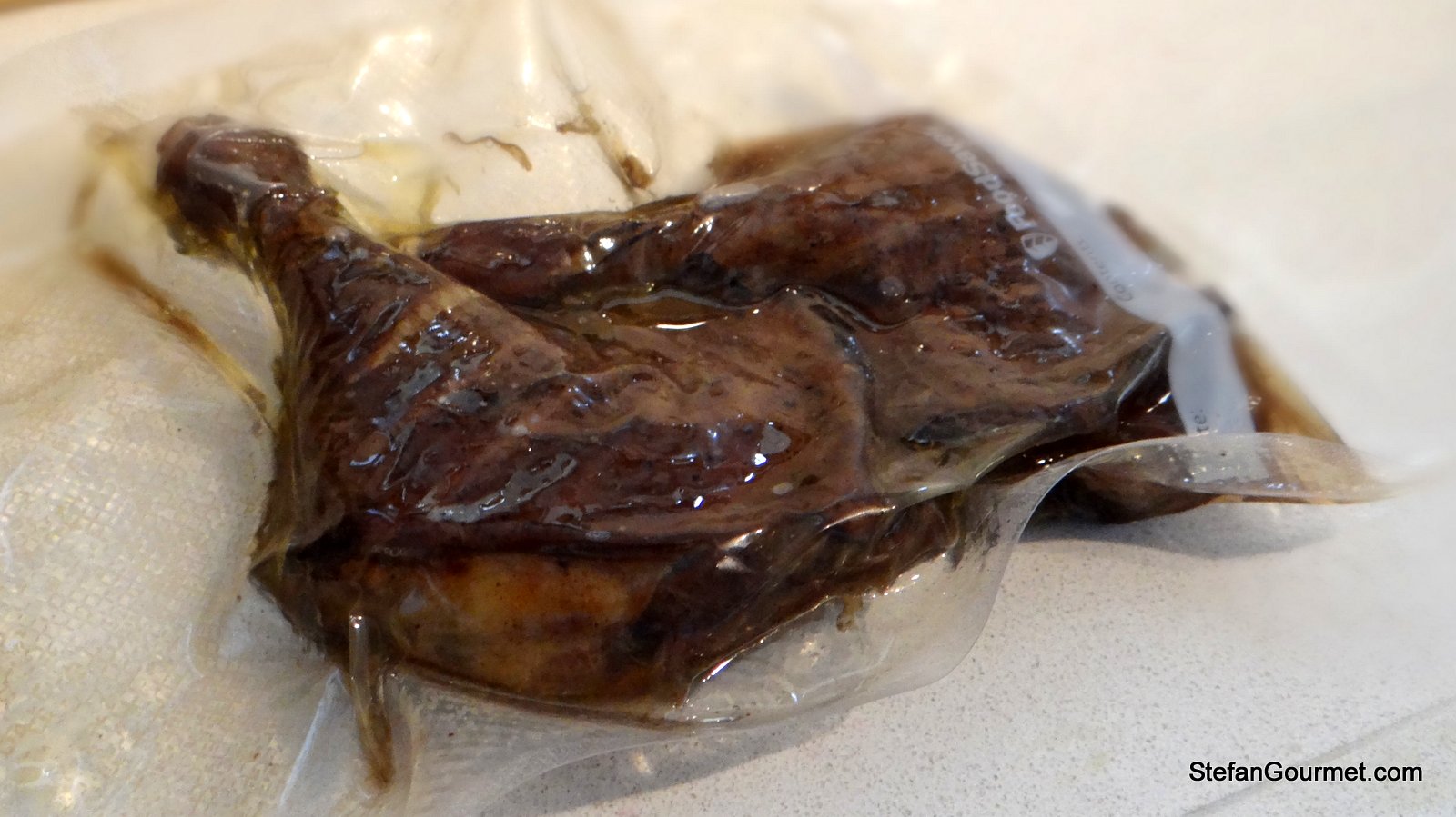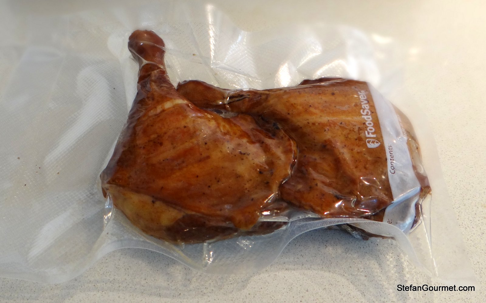 Something I tried for the first time and liked was to smoke the duck leg first, and then finish cooking it sous-vide. Just like with brisket or pulled pork, this technique works very well as the smoky flavors penetrate all the way through the meat during the sous-vide cooking, and the meat turns out very tender, juicy, and flavorful.