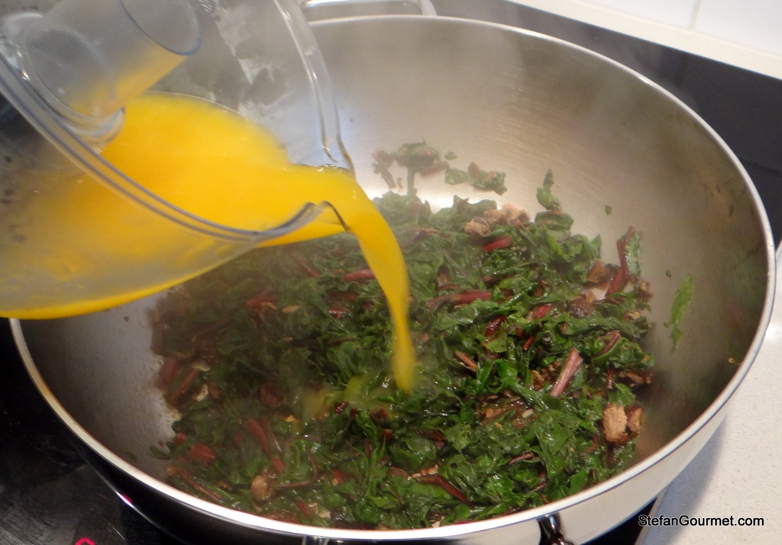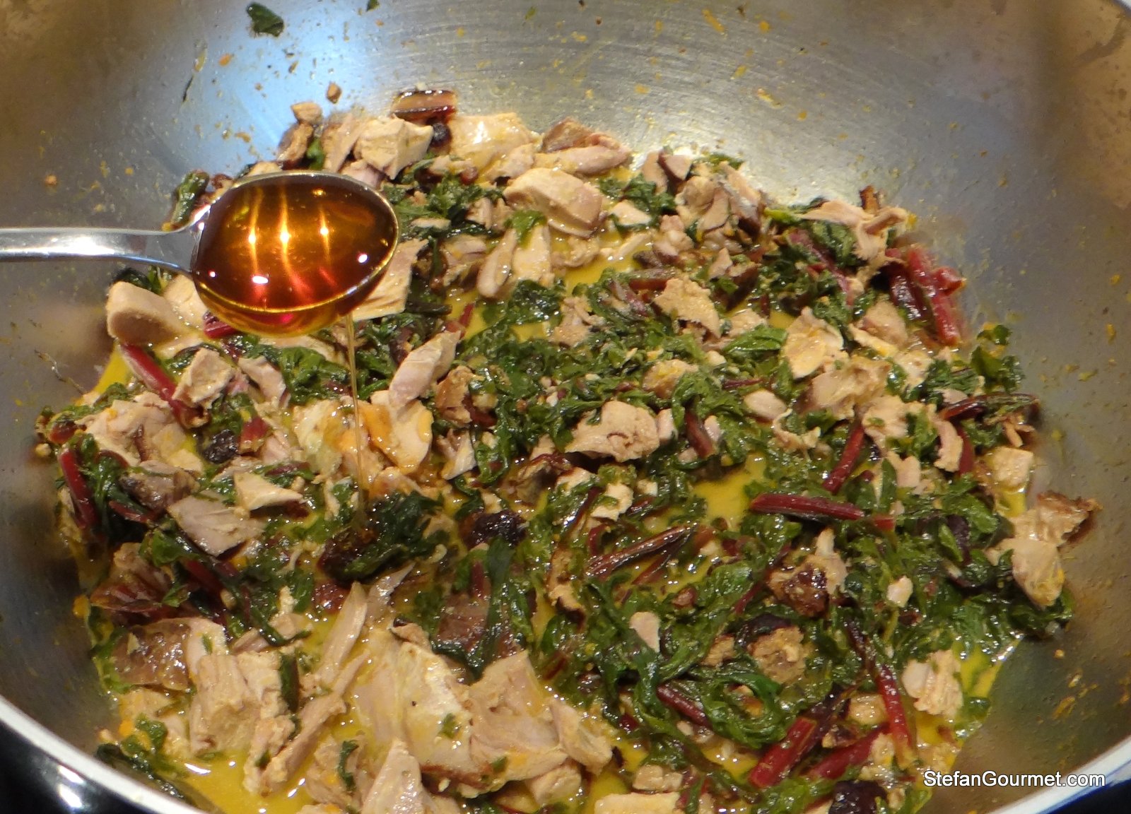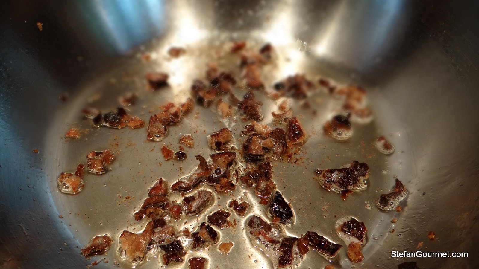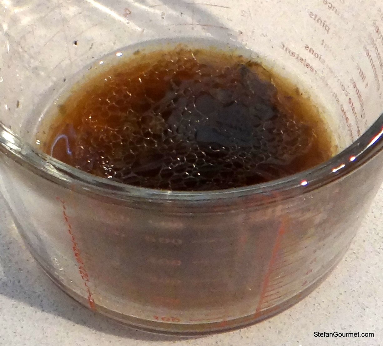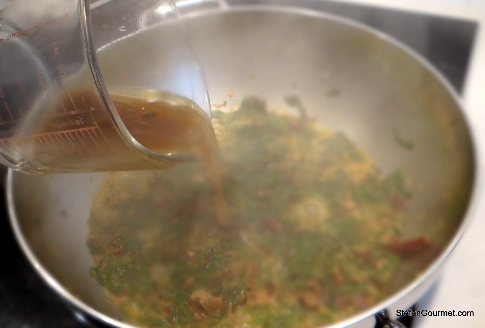 Add the duck juices from the sous-vide bag. In this case there is no need to remove the scum from the sous-vide juices first.