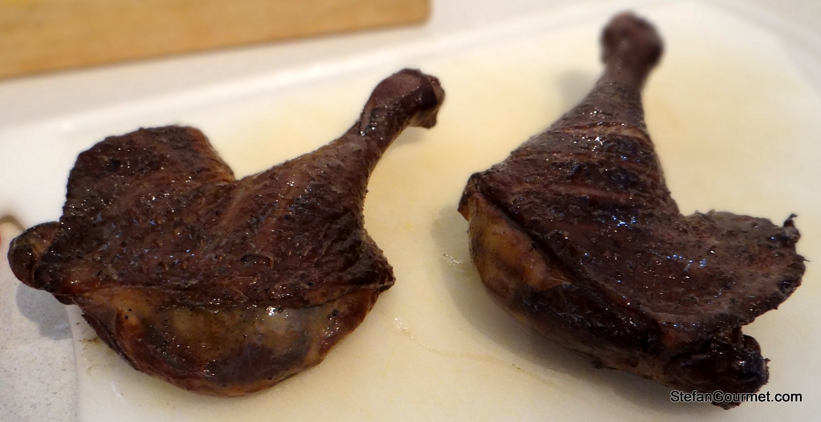 yeah, my closest pavement strip is still very far… I have a little balcony, and I have done some grilling and illegal meat smoking there.. dont ask please 😉 I mean, my apartment complex doesn’t allow for any grilling/smoking unless you use propane. Good to know about the duck legs color, they looked delicious on their own!