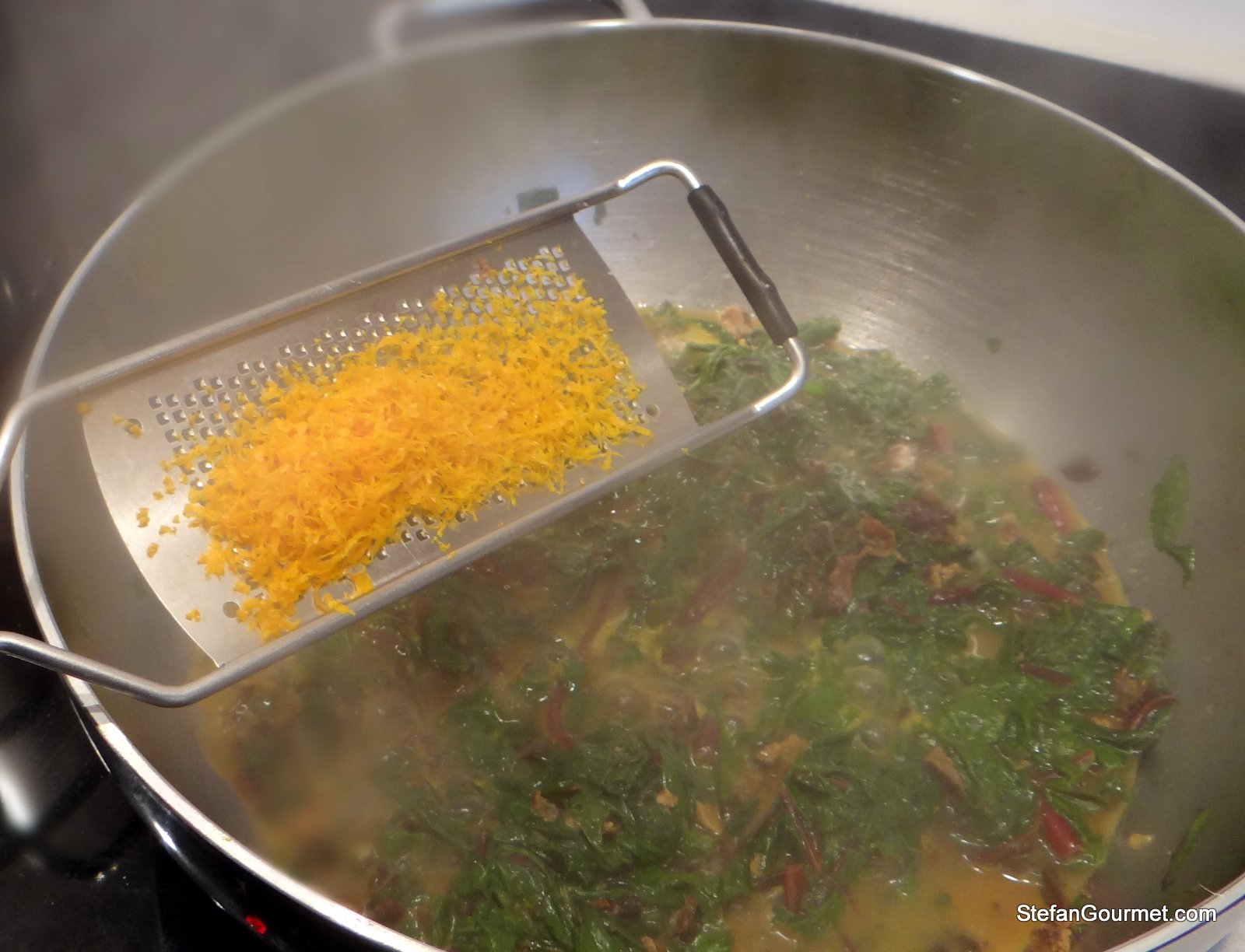 …as well as grated orange zest. It is easiest to zest the orange before juicing it.