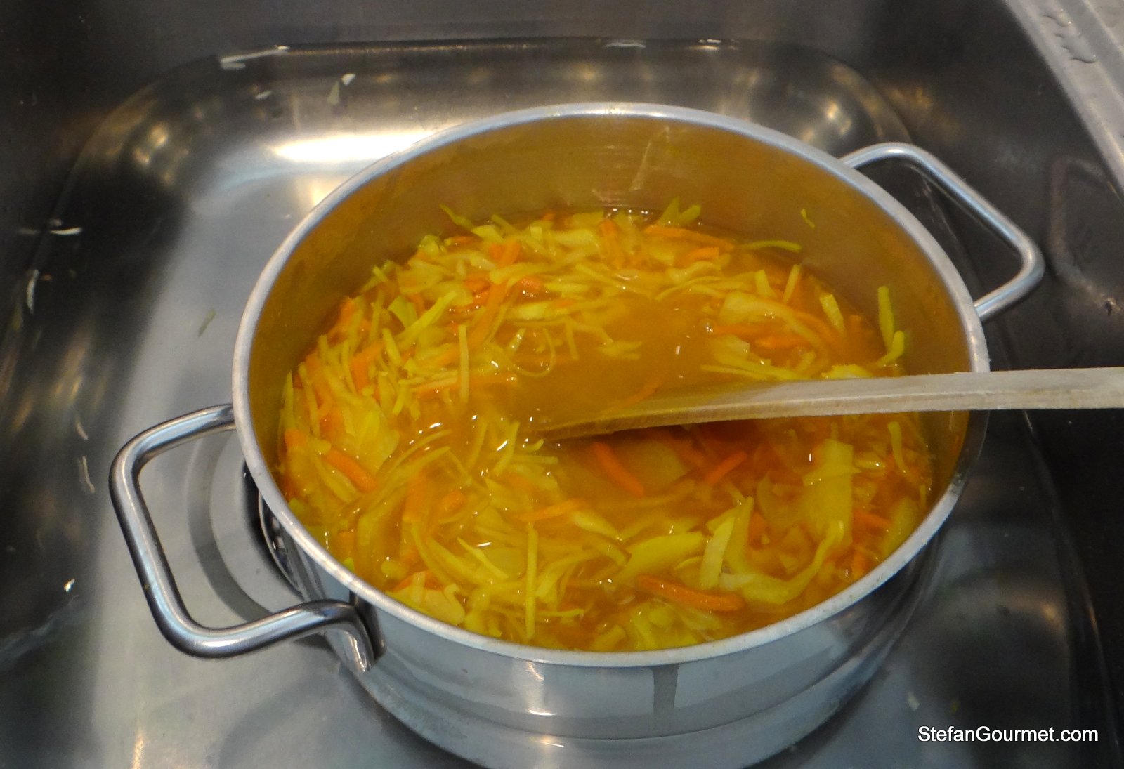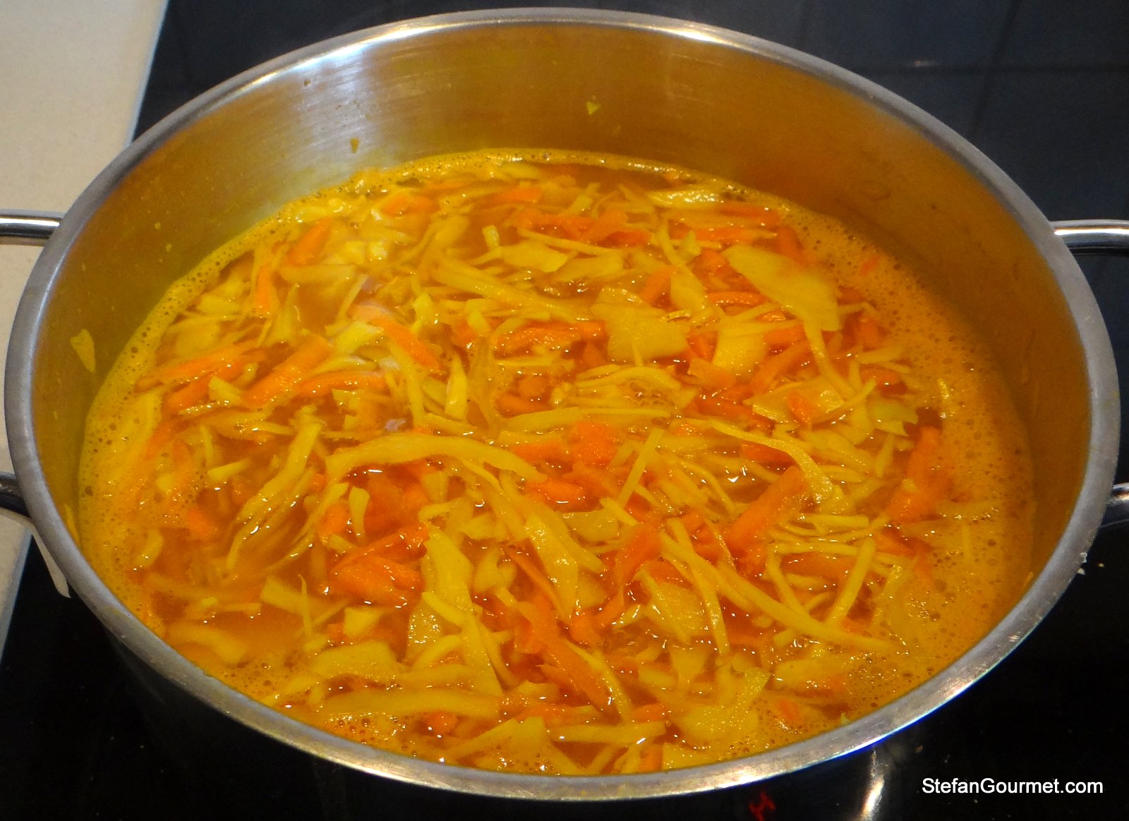 Add the carrot and cabbage and cook for 5 minutes.