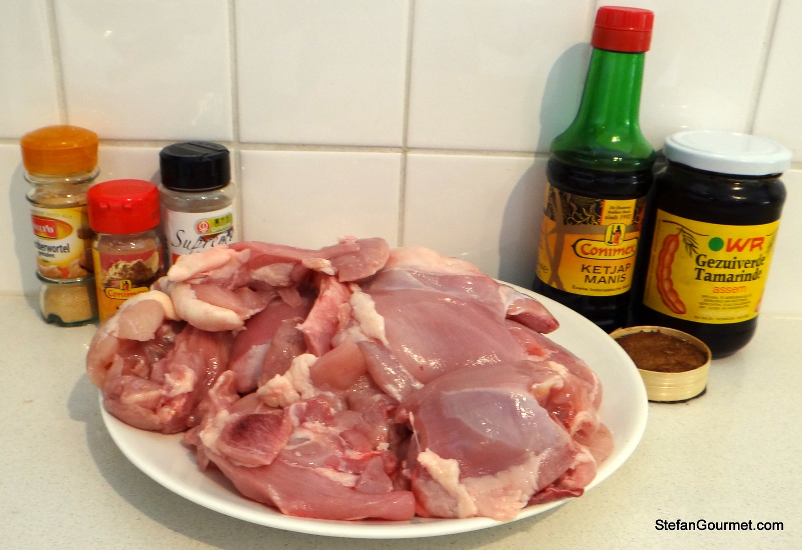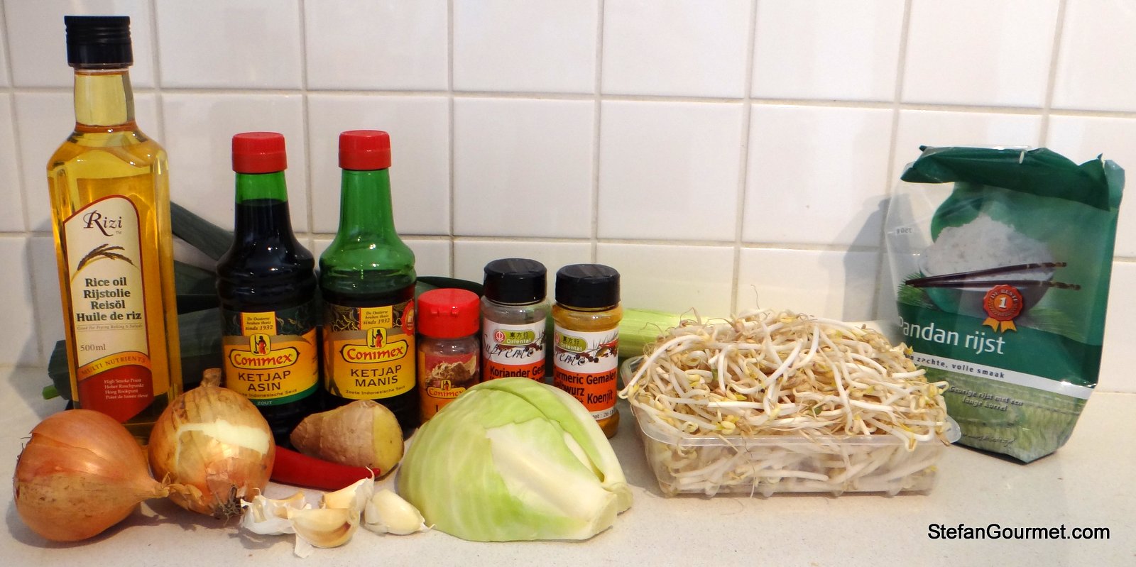 For an instant authenticity boost, I’d suggest to swap out the Conimex soy sauce for pretty much any other brand. In Indonesia, sweet soy sauce is thick and syrupy. ABC is the leading brand, and is fairly easy to find in Holland as well. The white “jerry cans” with red cap are also excellent. In smaller sized bottles, Lucullus is decent. In contrast, Conimex is just about the LEAST authentic-tasting soy sauce out there.
