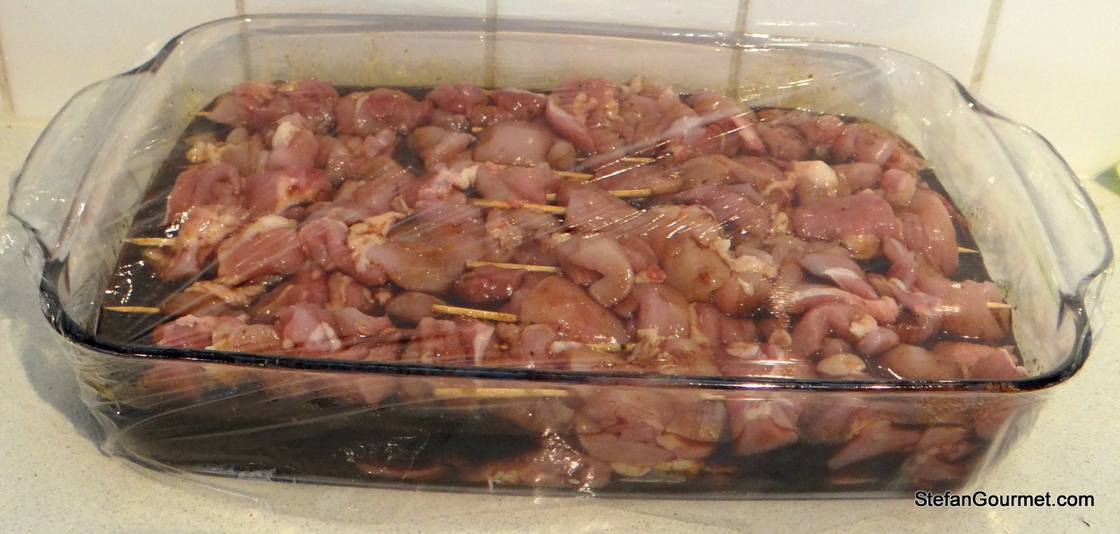 Cover with plastic wrap and allow to marinate for an hour in the refrigerator.