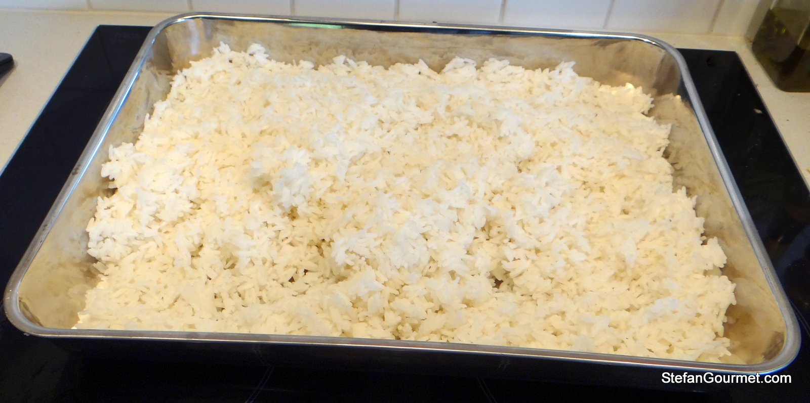 Cook the rice and allow to cool to room temperature in a shallow dish. The rice must be cold before you fry it.