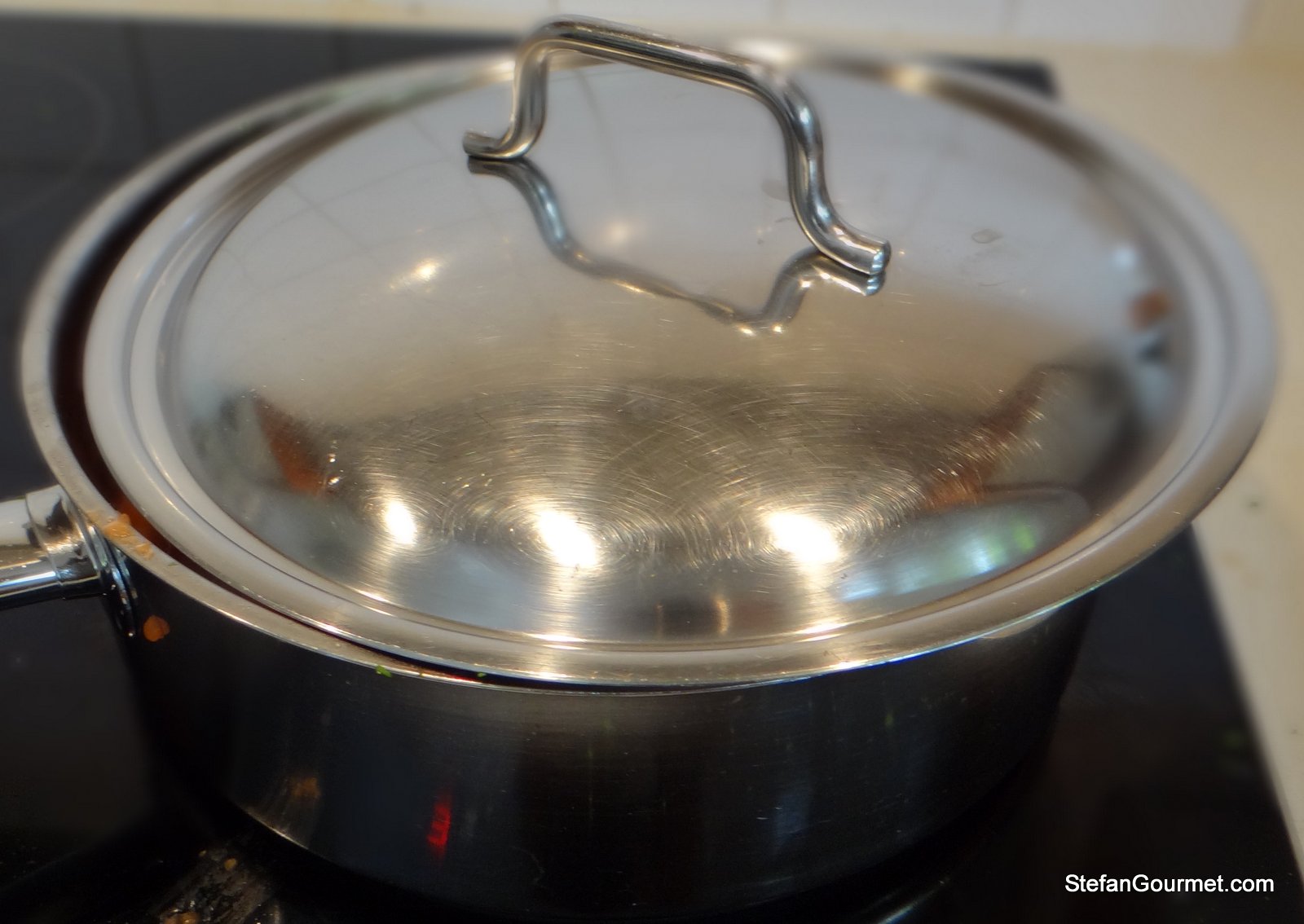 So why am I preparing this dish in summer? Because fresh eel is available around here between May and October only, that’s why. And this year because of the cold, I only noticed eel at my fishmonger for the first time last week. It was very expensive (because eel is starting to become scarce), but I’m glad I bought it anyway because prepared this way it was absolutely delicious! The eel gives off a very nice flavor to the tomato sauce, the eel is tender and juicy without tasting too greasy, and the flavor of the eel is not at all overpowered by the tomato sauce.